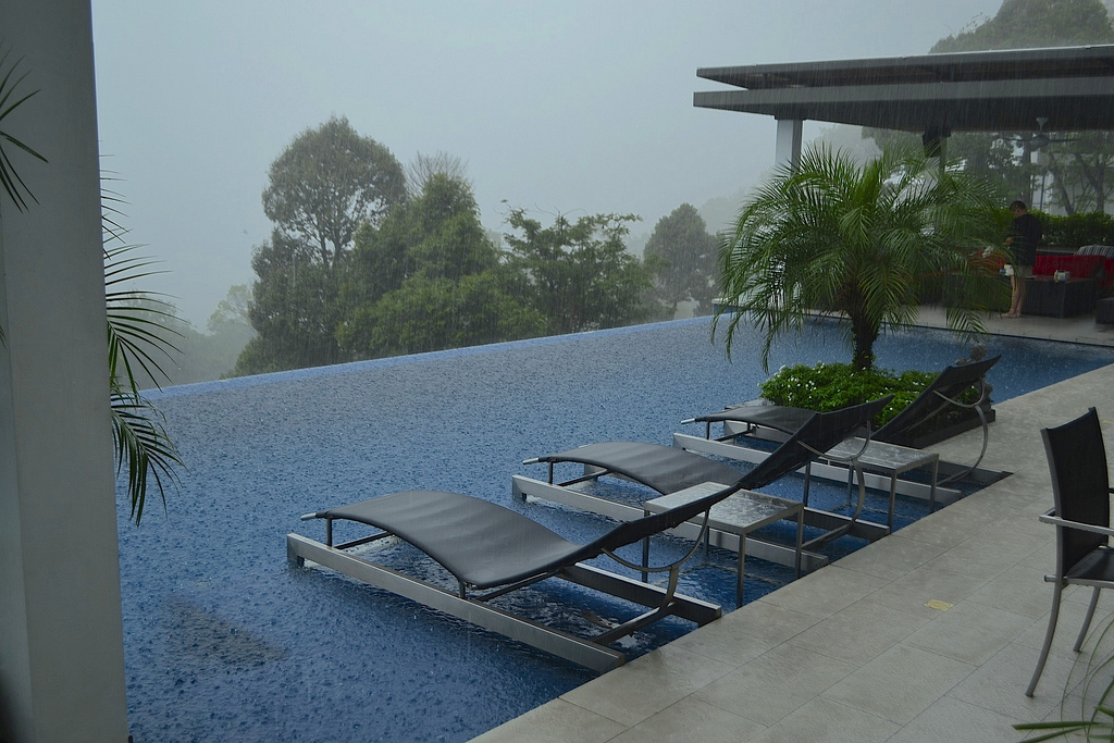 Фонтан рядом с фермой латекса
