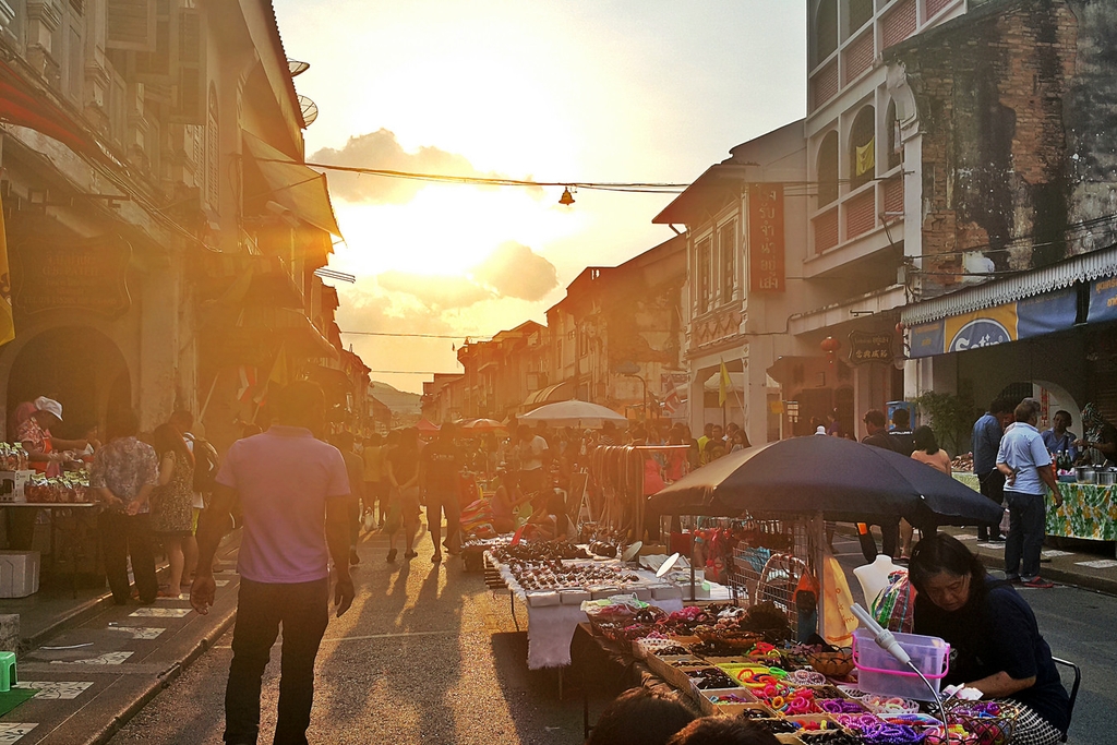 Старый город всегда был торговым центром, и сегодня, на Таланг-Роуд по-прежнему работает множество магазинов, торгующих тканями, инструментами, спортивным инвентарем, одеждой и традиционными лекарственными средствами (здесь находится старейшая аптека в Пхукете). Кроме того, тут можно отлично погулять между кафе, ресторанами и барами; это действительно активная и оживленная улица, и отличное место в тайском стиле.